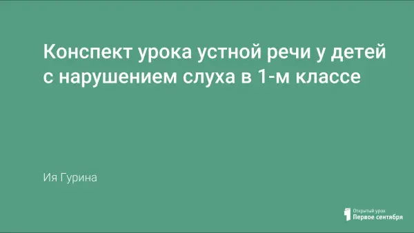 Представлен конспект урока устной речи у детей с нарушением слуха в 1-м классе.