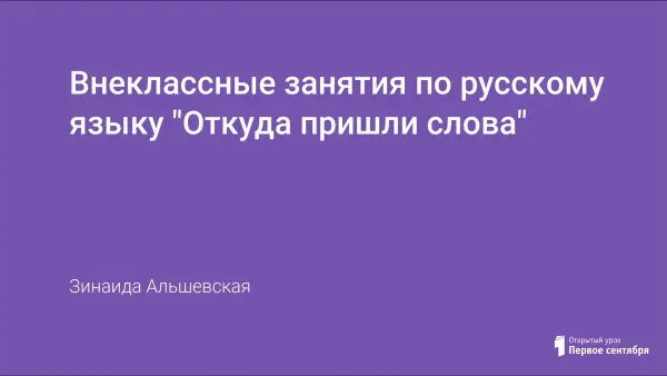 В работе представлено внеклассное занятие по русскому языку для начальных классов из разработанного цикла "Откуда пришли слова", состоящего из конспектов 20 занятий и электронных приложений к ним. Внеклассные занятия направлены на формирование лексического запаса, объяснение современного значения слов и знакомство с их этимологией.