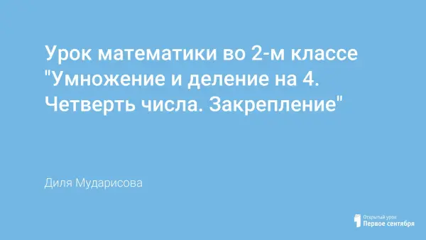 На уроке повторяются табличные случаи умножения и деления на 4, решение задач на деление. Последовательно ведется работа над развитием внимания и воспитанием культуры умственного труда.