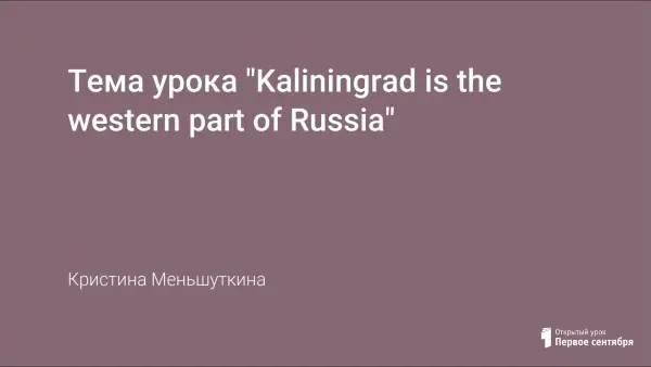 Данный урок разработан для учащихся 9-х классов. Цель урока - учиться развивать и применять умения и навыки в устной речи по теме "Kaliningrad is the western part of Russia".