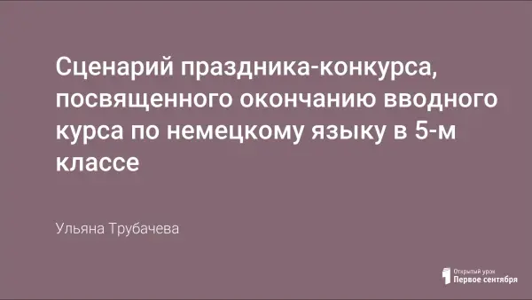 Праздник-конкурс посвящен окончанию вводного курса по немецкому языку в 5-м классе. Проводится он обычно на последнем занятии по немецкому языку. Праздник-конкурс развивает познавательный интерес, творческую и мыслительную деятельность учащихся, сплачивает детей, побуждает желание изучать немецкий язык.