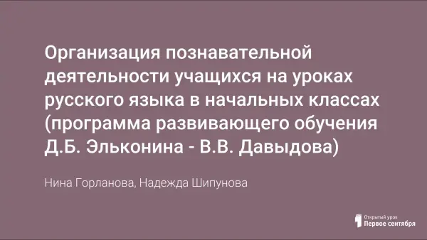 Организация познавательной деятельности учащихся на уроках русского языка в начальных классах (программа развивающего обучения Д.Б. Эльконина - В.В. Давыдова)