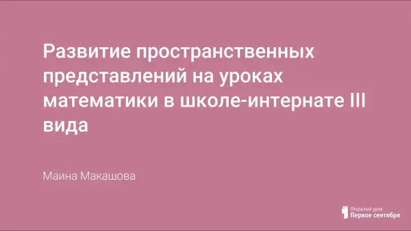 Автор раскрывает проблему развития у незрячих детей пространственных представлений на уроках математики. Компенсация слепоты осуществляется за счет сохранных анализаторов. Абсолютно слепые дети пользуются в учебной работе тактильно-кинестетическим и слуховым способами восприятия учебного материала и ориентации в жизненном пространстве.