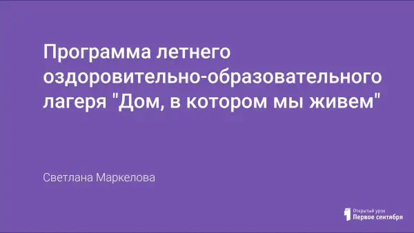 Статья представляет программу "Дом, в котором мы живем" пришкольного летнего оздоровительно-образовательного лагеря: пояснительную записку, правовую базу программы, концепцию и шесть модулей, взаимосвязанных и взаимодополняющих друг друга.