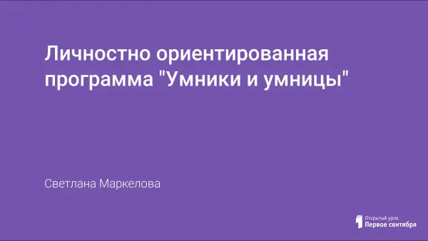 Интеллектуально-личностная программа «Умники и умницы» с одарёнными детьми направлена на выявление и развитие потенциала каждого ребёнка, обучающегося в массовой школе. Программа содержит алгоритм действий для всех участников ОП.