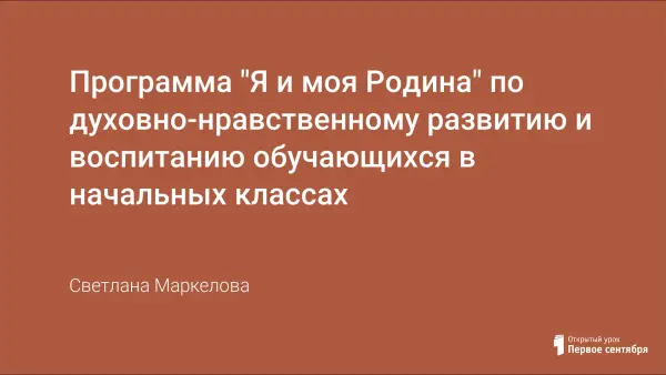 Программа «Я и моя Родина» определяет цель, задачи, формы и методы работы по организации духовно-нравственного развития и воспитания обучающихся в начальных классах, может содействовать качественной организации педагогических подходов к создания благоприятных условий для индивидуального развития личности ребенка, его духовного мира, нравственных ценностей.