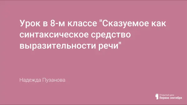 Открытый урок русского языка в 8-м академическом классе на повторение и закрепление пройденного материала по теме «Сказуемое». На уроке используются компьютерная презентация, разнообразные эффективные приемы работы с текстом, способствующие подготовке 8-классников к ГИА, такие как составление текста в ходе урока, анализ составленного текста как жанра публицистики и т.д., а также информация на тему «А.С. Пушкин и его лицейские друзья».