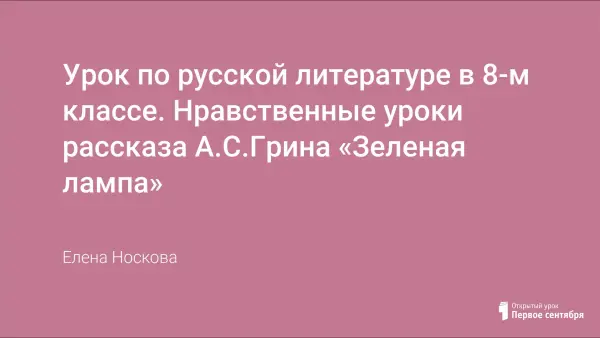 Цели урока: познакомить учащихся с рассказом А.Грина «Зеленая лампа» с помощью приёма «чтение с остановками»; стимулировать мыслительную и творческую деятельность учащихся с помощью приемов: составление рассказа с помощью ключевых слов, «сводная таблица»; способствовать развитию личных достижений учащихся через творческую активность.