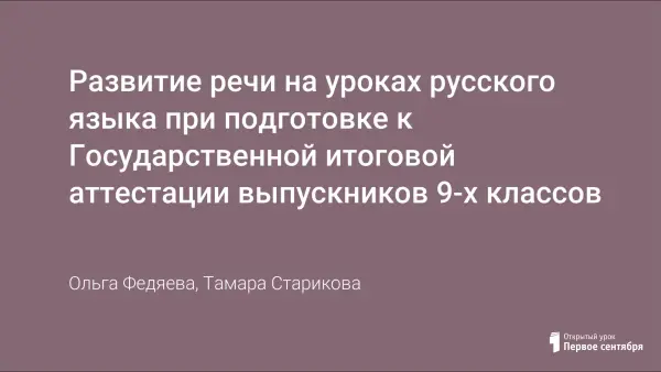 Развитие речи на уроках русского языка при подготовке к Государственной итоговой аттестации выпускников 9-х классов