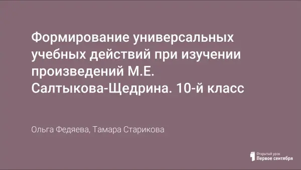 Формирование универсальных учебных действий при изучении произведений М.Е. Салтыкова-Щедрина. 10-й класс