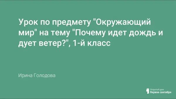 Урок помогает детям сформировать целостное представление об окружающем мире и месте человека в нём через понимание взаимосвязи и закономерностей природы. В результате дети должны усвоить причины возникновения дождя и ветра, общие факторы возникновения этих природных явлений. Урок проходит в форме преодоления ступенек в познании окружающего мира.