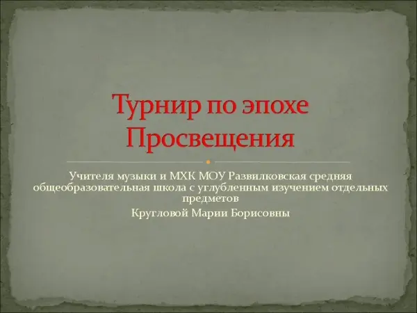 Цель турнира: расширение кругозора, воспитание активного интереса к музыке, живописи, литературе; формирование представления об эпохе Просвещения через взаимосвязь музыки, поэзии, живописи.