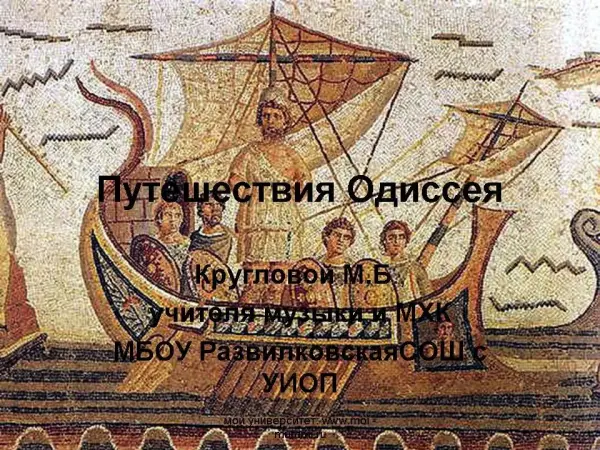 Идею этого урока я нашла в книге Мирецких «Уроки античного мира» (Титул, 1997). Урок необычный для МХК. Работа с контурной картой и текстом Гомера помогает наглядно и зримо увидеть путь возвращения домой царя Итаки. На втором уроке ребята имеют возможность поработать на интерактивной доске и провести клипарт с кораблем по пути Одиссея.