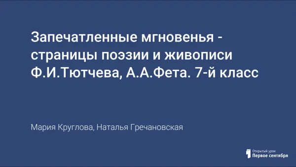 Запечатленные мгновенья - страницы поэзии и живописи Ф.И.Тютчева, А.А.Фета. 7-й класс