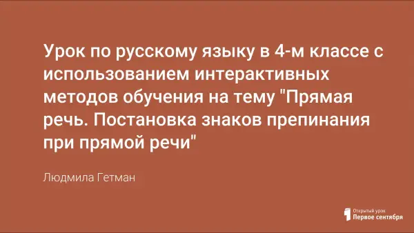 Урок русского языка вводит понятие прямой речи и правила ее написания, закрепляет пройденные прежде материалы с помощью совместной словарно-орфографической работы на перфокартах. Обучает взаимопомощи в работе, самооценке знаний.