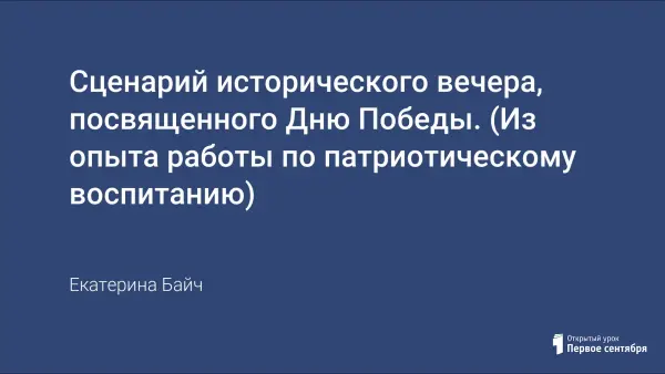 Сценарий вечера духовно-патриотического воспитания с использованием ИКТ-технологий. Цель разработки – дать целостное представление о Великой Отечественной войне (1941–1945 гг.), о роли человека на фронте и в тылу, возможность обратиться к личностному фактору отношения к данным историческим событиям.