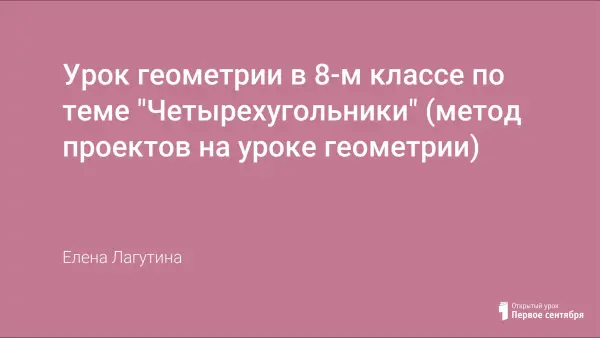 Одна из важных задач современного образования - развитие критического и творческого мышления ученика, приобщение его к достижениям информационного общества и формирования умения самостоятельно конструировать собственные знания. В конспекте урока геометрии представлен один из этапов проектной деятельности учащихся – компьютерная презентация. Ребята представляют не готовый проект, а только элемент своей поисково-информационной деятельности.