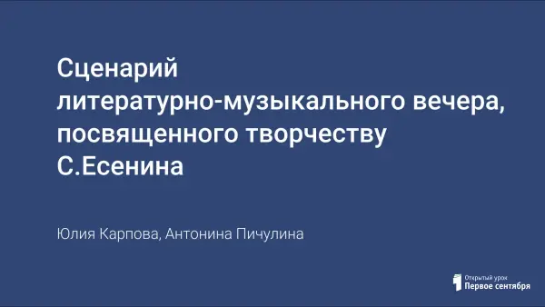 Сценарий литературно-музыкального вечера, посвященного творчеству С.Есенина