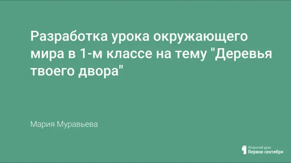 Урок окружающего мира в 1-м классе по программе "Гармония". Урок с элементами интеграции (окружающий мир + технология). Цели: расширить представление о многообразии деревьев, дать представление о понятиях хвойное и лиственное растение, обратить внимание на разницу осенних изменений в жизни этих групп растений, познакомить с представителями этих групп растений, показать роль человека в жизни дерева, воспитывать бережное отношение к растениям своего двора, своей улицы, пришкольного участка, воспитывать внимательность, наблюдательность, любознательность, любовь к природе.