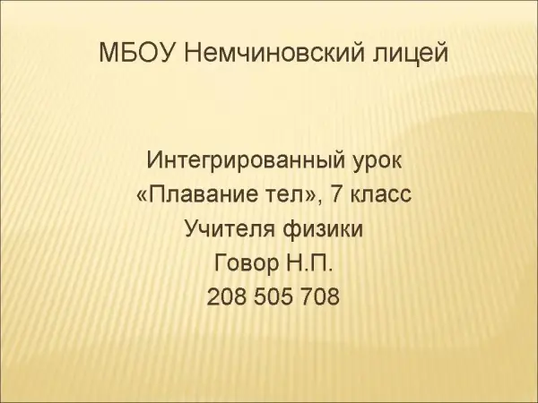 Интегрированный урок "физика + биология" по теме "Плавание тел". 7-й класс