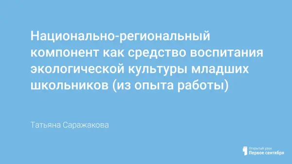 Человек, не знающий прошлого, не может знать и будущего. Наша цель — восстановление прошлого ради будущего. Моя воспитательная работа претворяется с целью внедрять национально-региональный компонент через обучение, воспитание, развитие гармонично развитой личности в свете гуманной педагогики в начальной школе.
