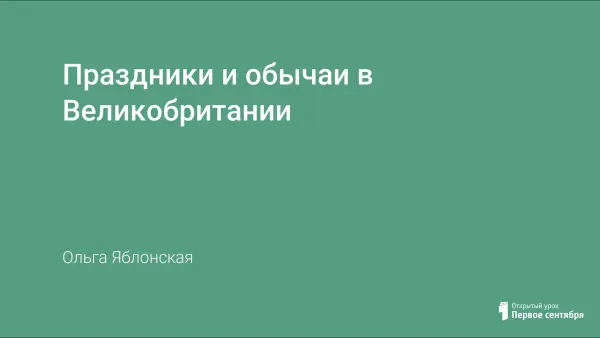 Изучение иностранного языка неразрывно связано с проникновением в иноязычную культуру. Для понимания культуры страны изучаемого языка важную роль играет знакомство с праздниками, обычаями и фольклором. Предложенный урок проводится в 8-м классе и разработан с целью активизации и закрепления лексического и грамматического материала по изученной теме, развития навыков устной речи, навыков понимания иностранной речи на слух, навыков чтения и письменной речи. На данном уроке используются компьютерные технологии, что делает урок современным, насыщенным и содержательным.