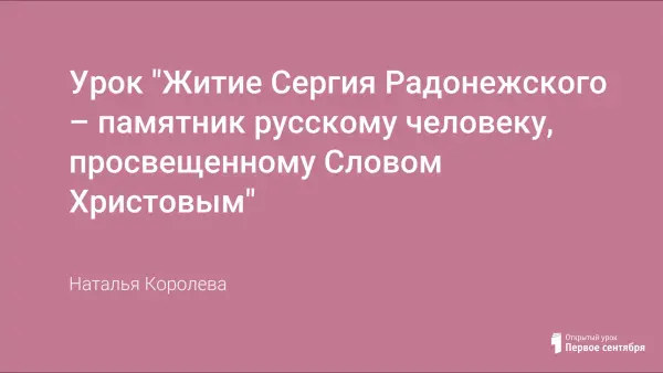 Урок помогает раскрыть историческую основу "Жития Сергия Радонежского", углубить понятие о жанре жития, воспитать чувство патриотизма, высокой духовности, нравственности, ответственности потомков перед великими предками.