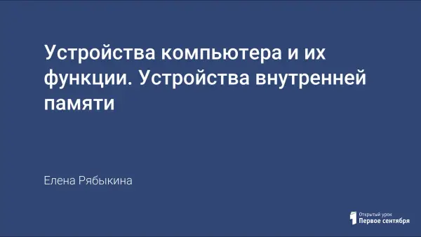 В ходе урока учащиеся познакомятся с видами внутренней памяти; показывается работа ОЗУ, ПЗУ, CMOS, с использованием ЭОР. Учащиеся узнают: структуру ОЗУ и ПЗУ; назначение различных видов памяти; характеристики типов внутренней памяти; научатся: различать устройства внутренней памяти; понимать взаимодействие внутренней памяти с другими устройствами, в частности, с процессором.