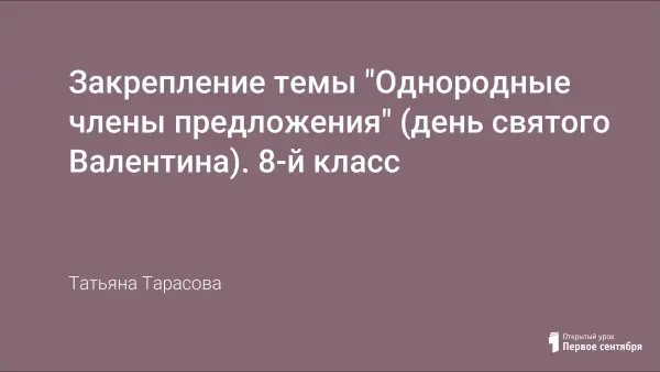 Занятие имеет два смысловых "стержня" – однородные члены предложения, знаки препинания в предложениях с однородными членами и традиции празднования Дня святого Валентина. Все тексты для грамматических заданий связаны между собой тематически, адаптированы автором для выполнения разнообразных упражнений.