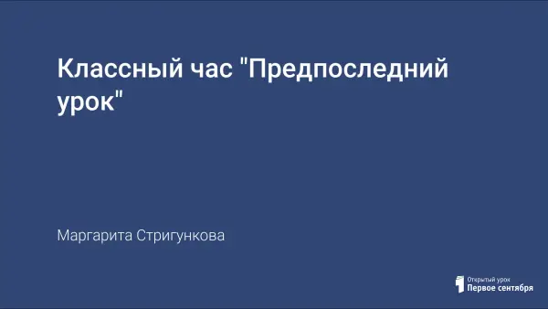 Классный час "Предпоследний урок" в 11-м классе стал традиционным в моей работе с выпускниками. Создавали его вместе - всем коллективом класса. Наблюдается совместное творчество, обоюдный обмен мнениями, дискуссия, беседа. Классный час о школе, о человеке, о будущей самостоятельной жизни выпускников, о воспитании.