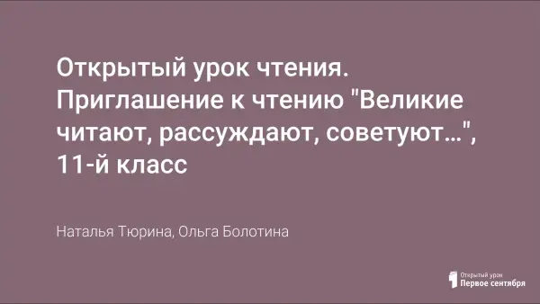 Открытый урок чтения. Приглашение к чтению "Великие читают, рассуждают, советуют…", 11-й класс