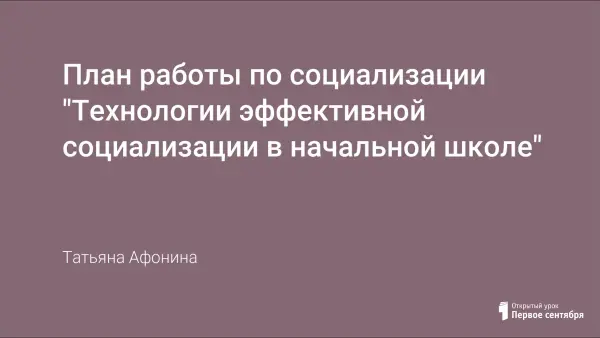 Представлен план работы по социализации "Технологии эффективной социализации в начальной школе".