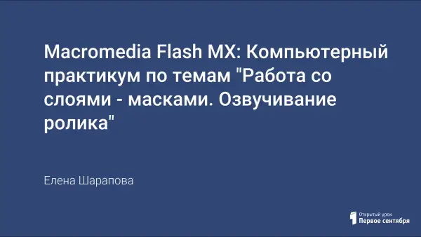 В статье представлен компьютерный практикум по темам: «Слой-маска», «Вставка звука», «Программное управление звуком», «Библиотека Buttons». Даётся подробный алгоритм выполнения задания, а также предлагается задание для самостоятельного выполнения.