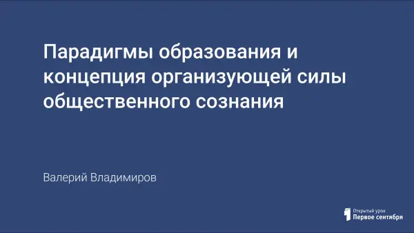 Рассмотрены четыре педагогических парадигмы, используемые в ходе обучения учащихся и студентов. Показано, что каждая при обучении возникает в своё время и – на своём месте. Для объединения их предлагается понятие – организующая сила сознания. В работе сформулирована концепция современного образования: повышение порядка мышления путём постепенного повышения уровня поставленных задач и повышение уровня сознания путём взаимодействия личности учащегося с организующей силой сознания учителя в ходе непосредственной работы при осознании пути решения проблемы. Для реализации данной концепции предлагается ввести в школе институт наставничества из учителей-старателей.
