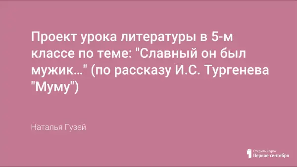 Урок должен обеспечить условия для усвоения учащимися средств создания литературного героя на примере образа Герасима по рассказу И.С. Тургенева «Муму». Урок ориентирован на формирование деятельности: постановки учащимися учебных задач, обсуждение рациональных способов усвоения материала, формирование оценочной деятельности, рефлексивных умений.