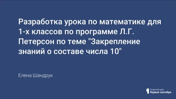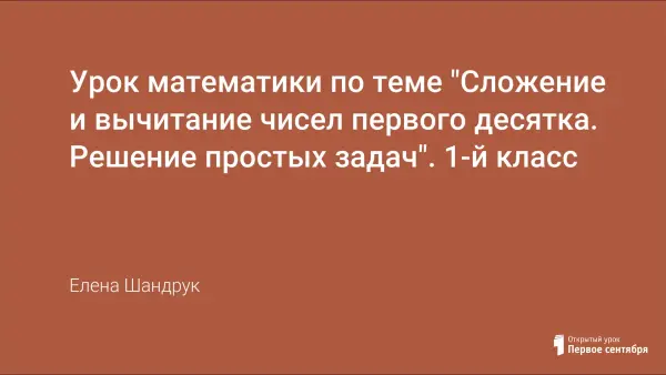 Урок к учебнику "Математика" по программе М.И. Моро с интегрированным УМК для начальной школы "Открываем законы родного языка, математики и природы" закрепляет приемы сложения и вычитания в пределах первого десятка, основанные на знании состава чисел. Учащиеся формируют умение решать текстовые задачи и составлять новые задачи на основе базовой. Развивают внимание, память, речь.