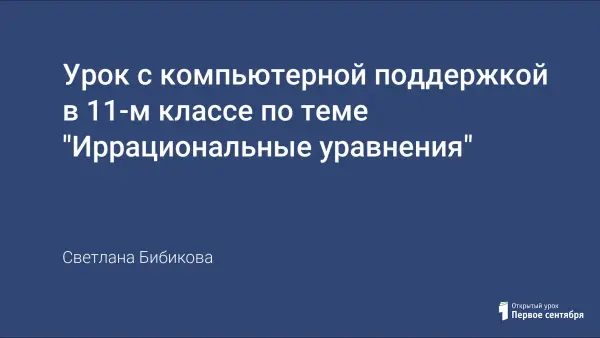 Данный урок является первым при изучении темы "Иррациональные уравнения". Цель урока: ввести понятие иррационального уравнения и познакомить с основными методами и приемами их решения.