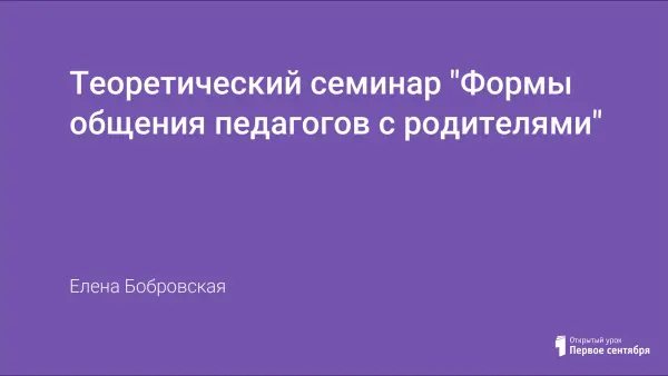 Теоретический семинар поможет старшему воспитателю ДОУ актуализировать и систематизировать знания педагогов о формах общения воспитателей с родителями. Перед семинаром проводится предварительная работа, включающая подготовку воспитателей по конкретным формам общения с родителями и предоставление своего материала на обсуждение проблемы.