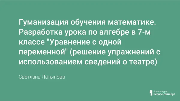 Важнейшей особенностью современного этапа развития школы являются идеи гуманизации обучения. Гуманизация математического образования означает, что в обучении математике акцент ставится на общее развитие учащихся, а именно — развитие логического мышления, математической речи, пространственного воображения, интуиции. Гуманизация обучения математике предполагает усиление взаимосвязи естественно-математического образования с гуманитарным. Реализовать эту идею позволяет использование на уроках математики при решении упражнений нематематической информации.