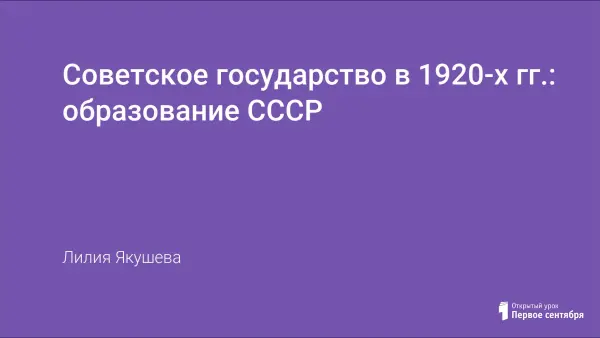 Урок с элементами лабораторной работы. Учащиеся совершенствуют навыки самостоятельной работы с документом. На основе анализа документального и учебного материала учащиеся характеризуют механизм объединения республик в единое государство: устанавливают, как и на каких основах образовался СССР, воссоздают историю образования СССР.