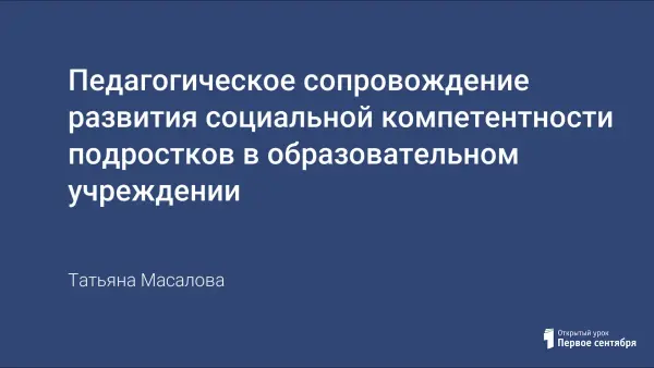 Рассмотрен процесс педагогического сопровождения развития социальной компетентности подростков в образовательном учреждении. Определены его сущность, стратегии, подходы, этапы и условия эффективного осуществления. Стратегиями сопровождения развития социальной компетентности подростков в образовательной среде являются стратегии развития и формирования. Выделены составляющие социальной компетентности, а также функции педагогического сопровождения развития социальной компетентности у подростков.