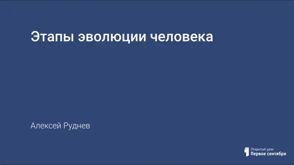 Урок-лекция с элементами диспута и поиска. На уроке рассматриваются вопросы эволюции (биологической и социальной) австралопитеков, древнейших и древних людей. Материал позволяет построить урок с использованием Интернет-ресурсов, других дополнительных материалов по предмету, позволяющих развивать умение анализировать, сравнивать, обобщать.