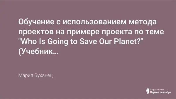 Я в своей педагогической практике методом проектов пользуюсь часто, и в данной работе мне хотелось бы поделиться своим опытом и описать алгоритм работы по методу проектов на примере проекта под названием "Who is Going to Save the Planet?".