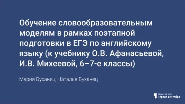 Обучение словообразовательным моделям в рамках поэтапной подготовки в ЕГЭ по английскому языку (к учебнику О.В. Афанасьевой, И.В. Михеевой, 6–7-е классы)