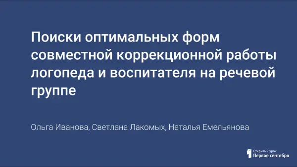 Поиски оптимальных форм совместной коррекционной работы логопеда и воспитателя на речевой группе