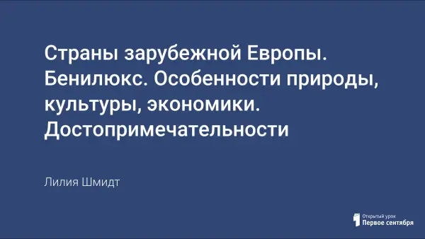 Урок проводится в форме путешествия по странам Бенилюкса. Учащиеся знакомятся с природными особенностями, достопримечательностями, экономикой этих стран.