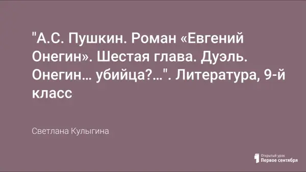 Продолжаем изучение романа А.С. Пушкина "Евгений Онегин". Шестая глава - кульминация и одновременно развязка сюжетной линии "Онегин - Ленский". Очень важно осмыслить данный эпизод на более высоком уровне по сравнению с первичным его восприятием. На уроке дается историко-бытовой комментарий происходящим событиям.