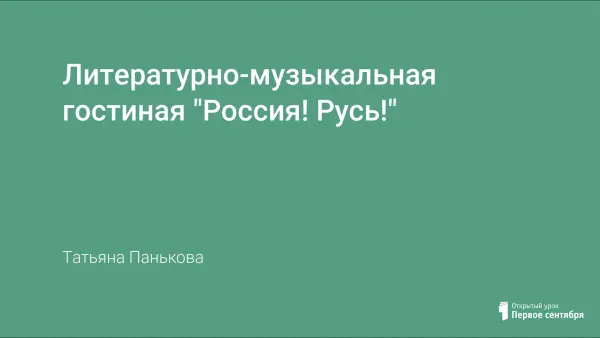 Данная работа - внеклассное мероприятие по музыке, представляет собой сценарий литературно-музыкальной гостиной, посвященной теме большой и малой Родины "Россия! Русь!". Внеклассное мероприятие по указанной теме способствует расширению знаний учащихся об истории родной страны, об истории своего края, талантливых людях, живущих на этой богатой земле. Основная идея предлагаемого материала - вызвать у учащихся чувство уважения и любви к своей Родине, чтить память о ее прошлом, сохранить и передать это чувство своим потомкам. Материал гостиной можно использовать как внеклассное мероприятие для учащихся старших классов, можно использовать также на родительском собрании с участием школьников, педагогов.