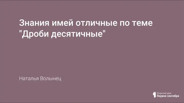 Основной целью урока является обобщение и углубление знаний учащихся по теме "Десятичные дроби". Урок способствует закреплению знаний, умений и навыков сравнения, сложения, вычитания и умножения десятичных дробей; развитию любознательности, расширению кругозора учащихся; тренировке внимания, памяти.