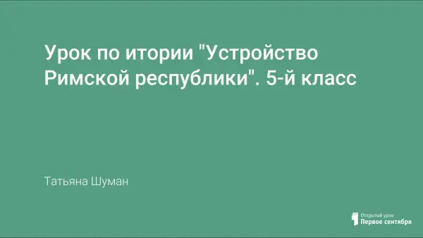 На уроке в 5-м классе учащиеся узнают об устройстве Римской республики, находят различия между Римом и Афинами, пытаются осмыслить, что Афинская республика демократическая, а Римская – аристократическая, объясняют значения новых понятий: равноправие, демократия, консулы, диктатор, патриции, плебеи, форум, Марсово поле.